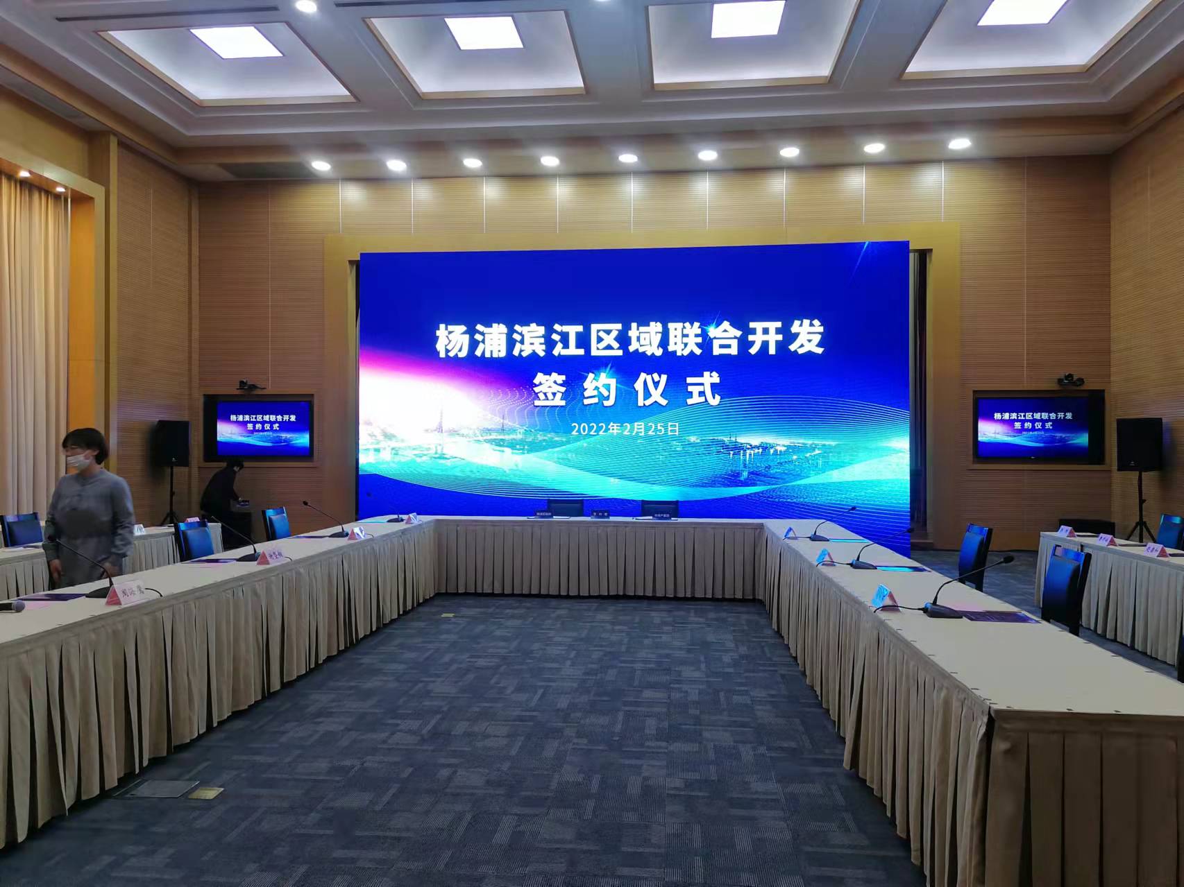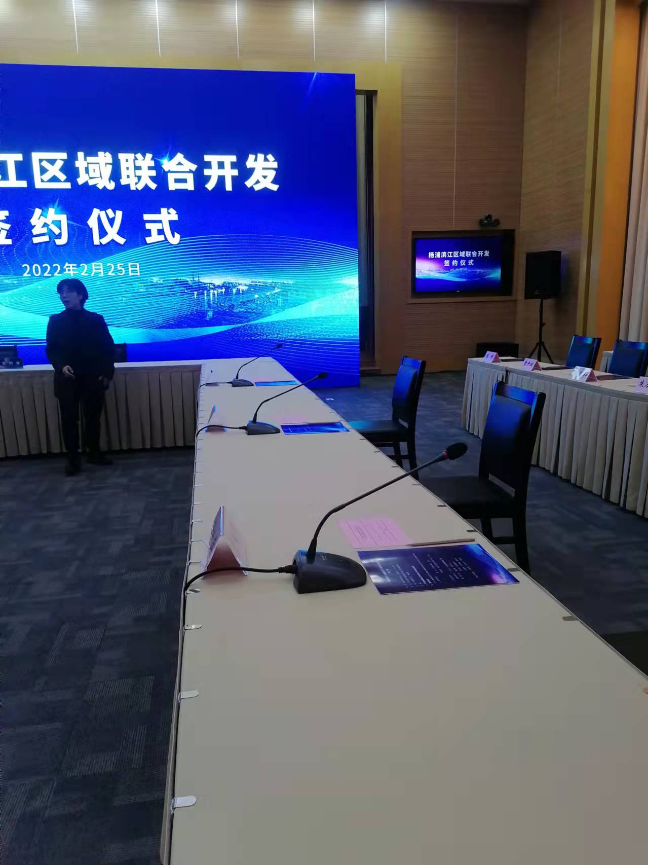 楊浦濱江區(qū)域聯(lián)合開發(fā)簽約儀式 百睿德提供會議音響,手拉手即席話筒服務(wù)